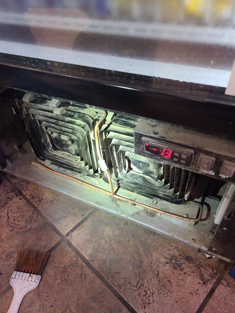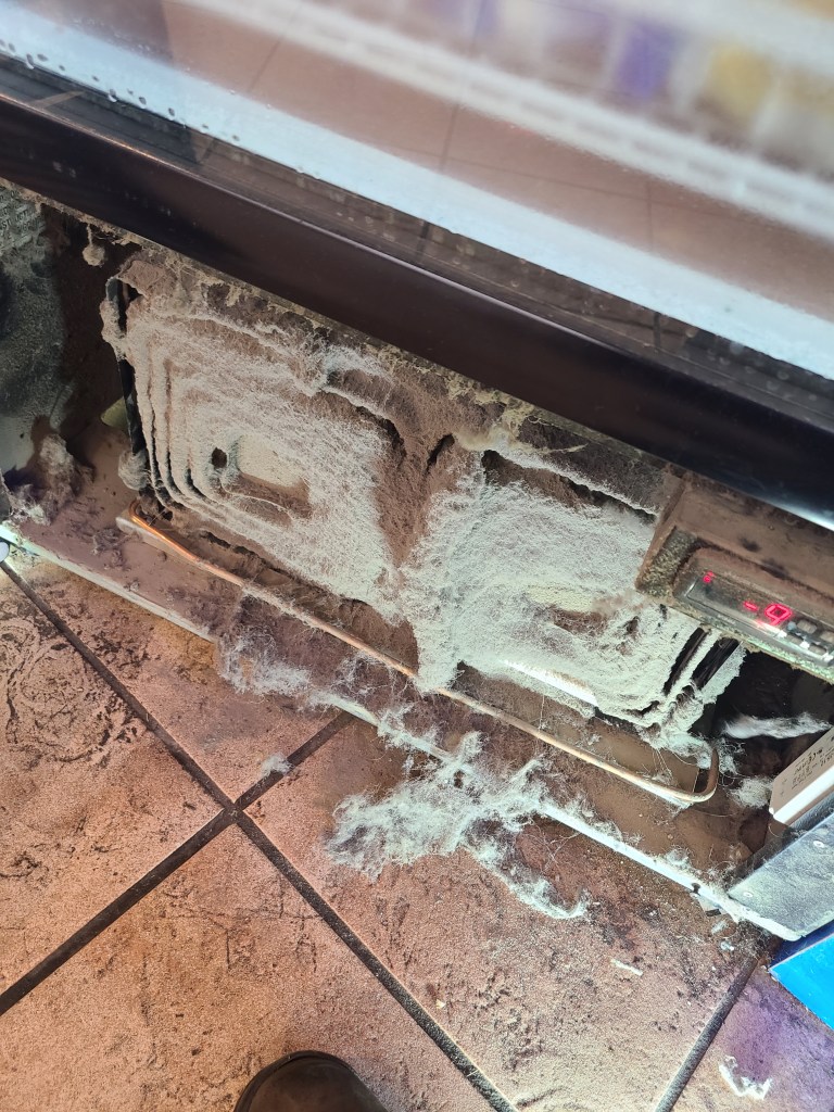 Dirty convenience store Ice cream freezer unit before cleaning. Scroll down for after picture